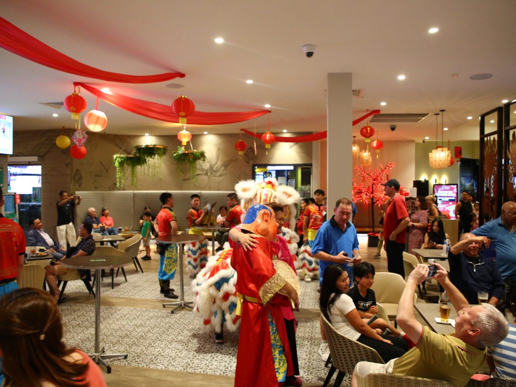 Festivities typically commence from 6pm, allowing guests to settle in and soak up the atmosphere. Live music sets the tone for the evening, creating an energetic and welcoming environment throughout the venue. A major highlight is the combined Lion Dance and Dragon Dance performance, weaving through the bistro and surrounding spaces, bringing colour, movement and tradition to life. Guests can take photos and experience the celebration up close before the night concludes with the thrilling sound of firecrackers.