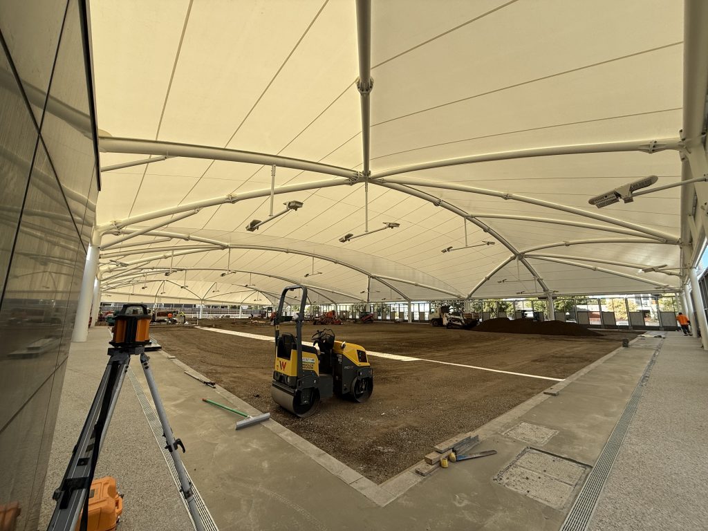 The framework for the two 4.5-metre digital screens is now in place, providing a clear sense of the immersive spectator experience this facility will offer when complete. Accessibility and safety has also been further improved with the installation of handrails and balustrades along the western elevation.
